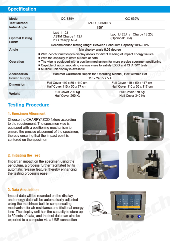 Confirm to ASTM D256、ASTM D6110、ISO179、ISO180、ISO13802 Standard